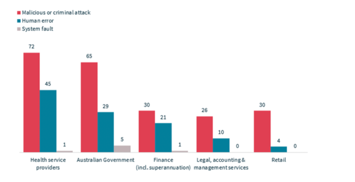 When a data breach occurs companies covered by the Privacy Act must report the incident to the Office of the Information Commissioner. Entities which are not covered by the act, such as political parties and most small businesses are not mandated to report data breaches. The OAIC compiles the data into a biannual report. The most recent findings reveal the top 3 causes of data breaches and the most affected industries (see below).