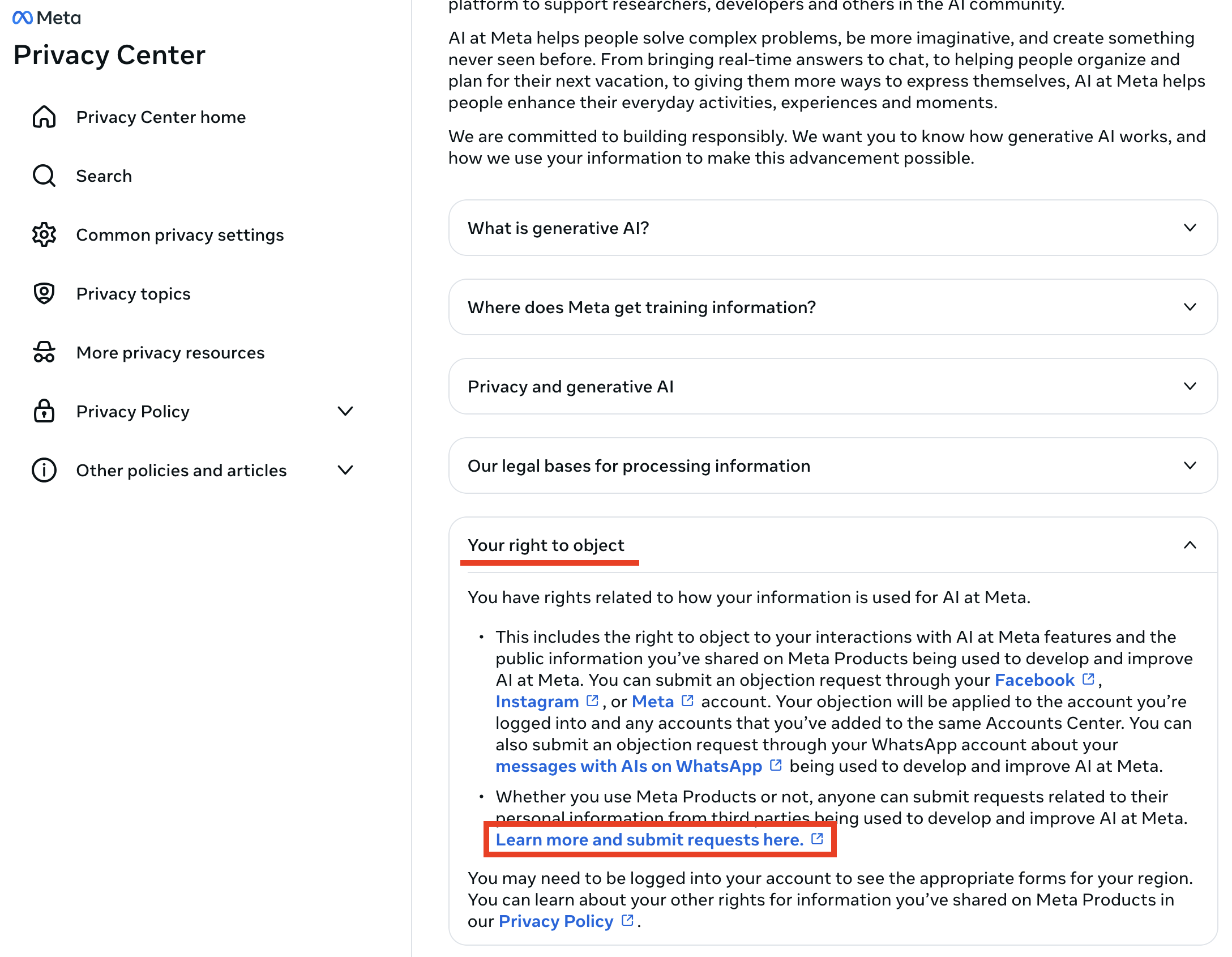 - Click ‘How Meta uses information for generative AI models and features’