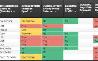 VPN comparison chart